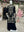 This Gilded Night long velvet shirt, in black with elegant detailing. The dress has a straight, open-front design with a V-neckline, both adorned with delicate lace embellished trim. The sleeves are long and feature intricate horizontal lace embellishment in white...