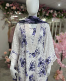 Embrace the spring air and blooming gardens with our 3piece "White Orchid Ensemble" ensemble, a sartorial whisper of elegance in Purple and white. Designed for the contemporary woman who appreciates the craftsmanship of Pakistani traditional clothing, this outfit exudes finesse with its schiffli fabric that dances with delicate floral embroidery.