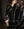 This Gilded Night long velvet shirt, in black with elegant detailing. The dress has a straight, open-front design with a V-neckline, both adorned with delicate lace embellished trim. The sleeves are long and feature intricate horizontal lace embellishment in white...
